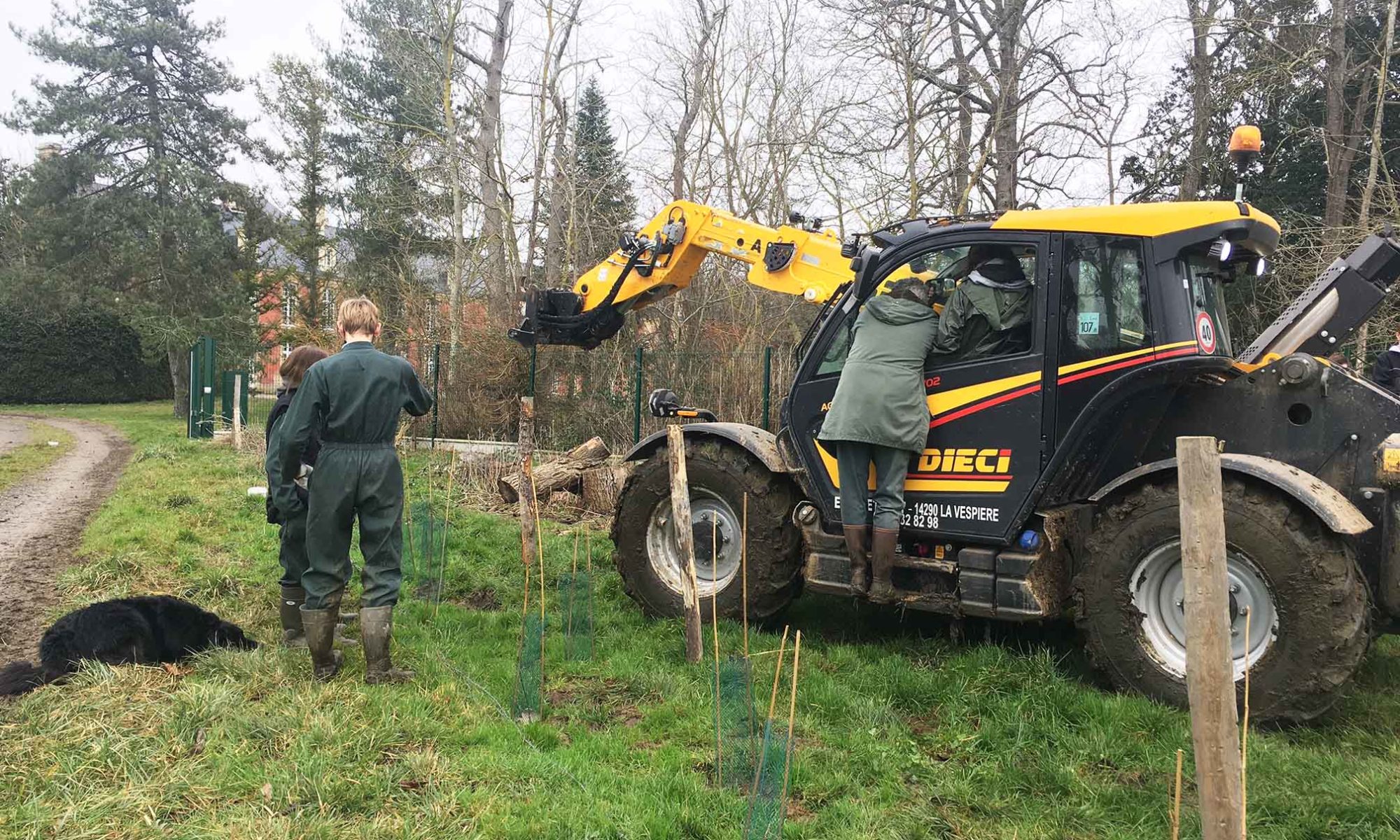 Les élèves de 2nde pro CEC ont participé à diverses activités de la ferme dans le cadre de leurs cours de biologie et de travaux pratiques : nettoyer le terrain (bois, ronce) pour y planter une haie, puis déposer et déplacer une clôture pour y accueillir les vaches au pâturage – tout ça, sur la même parcelle. Bravo à eux !